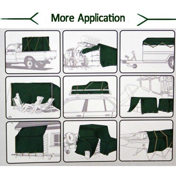 Usage: | For recreational vehicles, trucks, boats, cargo Protection,construction sites, firewood protecting, trailer cover, equipment cover, ground cover, emergency shelter, painting tarp, horiculture, agriculture, | |
